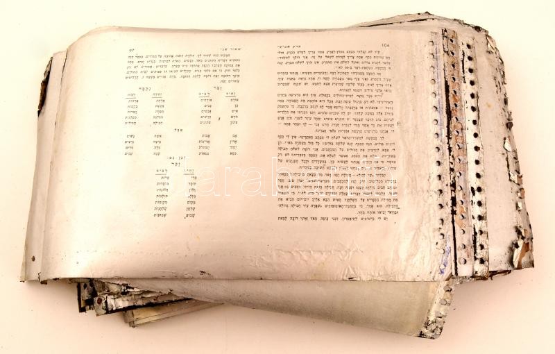 Beschreibung: Magyar Cionista Szövetség Ifj. Átképző Szakosztályának a kiadványa, fémlemezekre nyomott felfedezésre váró nyelvtankönyve, rossz állapotban.