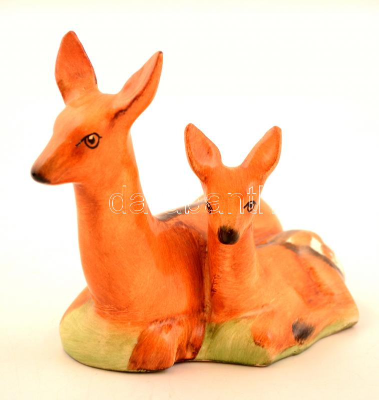 Beschreibung: Bodrogkeresztúri őzpár, kézzel festett kerámia figurapár, matricával jelzett, 12x11 cm