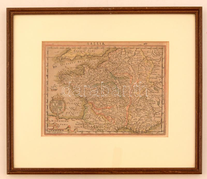 XVIII. század: Militia communis Galliea. Franciaország katonai térképe. Színezett rézmetszet, üvegezett keretben / 18th century. Military map of France Colored etching. 22x16 cm. In glazed frame