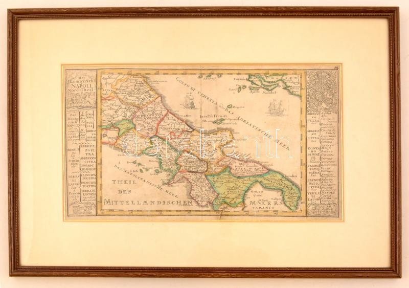 cca 1700 Johann Hofmann / Gabriel Bodenehr: Közép-Olaszország Színezett rézmetszet. Megjelent: Atlas Curieux oder neuer und Compendieuser Atlas. (Augsburg, 1700?). Méret: 29x17 cm. Igényes üvegezett keretben / cca 1700 Gabriel Bodenehr: Map of middle-Italy. Colored etching 29x17 cm In glazed frame.