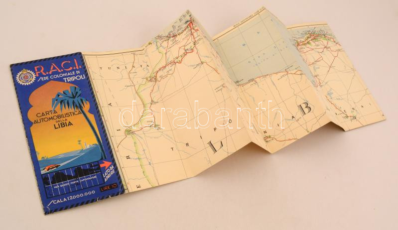 cca 1930 Líbia autóstérkép. Keménytáblás borítással / Carta Automobil... https://www.darabanth.com/de/277-Fernauktion/277.0/Andere-Sammelgebiete/Landkarten~27/cca-1930-Libia-autosterkep-Kemenytablas-boritassal--Carta-Automobilistica-di-Libia-larg~II1418274