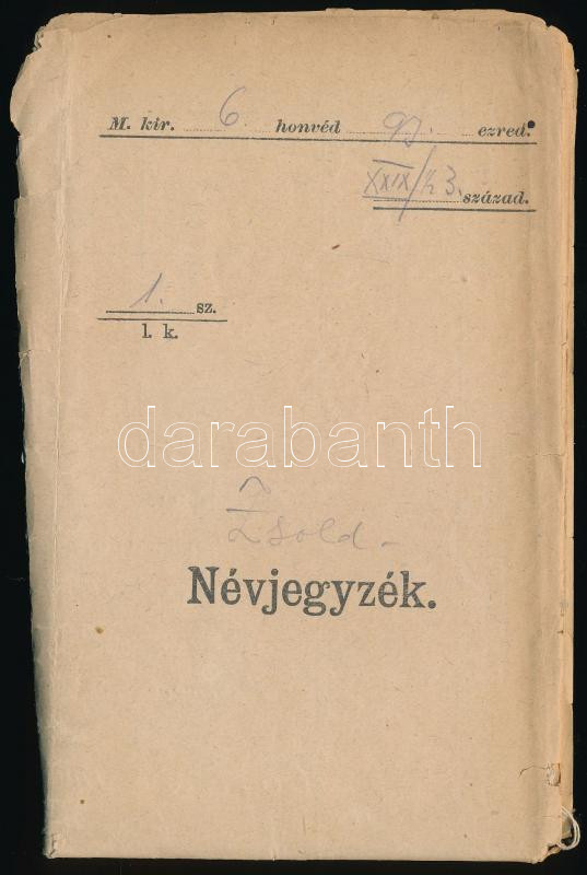 1917 Zsold névjegyzék, M. Kir. 6. honvéd gy. zlj., pp.:8, 34x21cm https://www.darabanth.com/de/277-Fernauktion/277.0/Andere-Sammelgebiete/Militaria~26/1917-Zsold-nevjegyzek-M-Kir-6-honved-gy-zlj-pp8-34x21cm~II1424224
