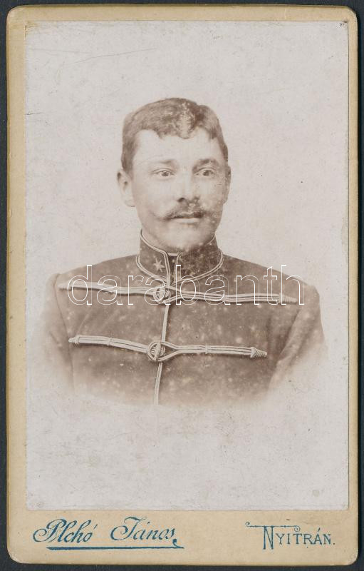 cca 1900 Katonaportré, keményhátú fotó Plchó János nyitrai műterméből,... https://www.darabanth.com/de/277-Fernauktion/277.0/Andere-Sammelgebiete/Militaria~26/cca-1900-Katonaportre-kemenyhatu-foto-Plcho-Janos-nyitrai-mutermebol-10-5C3976-5-cm~II1421821