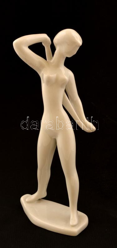 Beschreibung: Drasche törölköző női akt, fehér mázas porcelán figura, jelzett, hibátlan, m: 19 cm