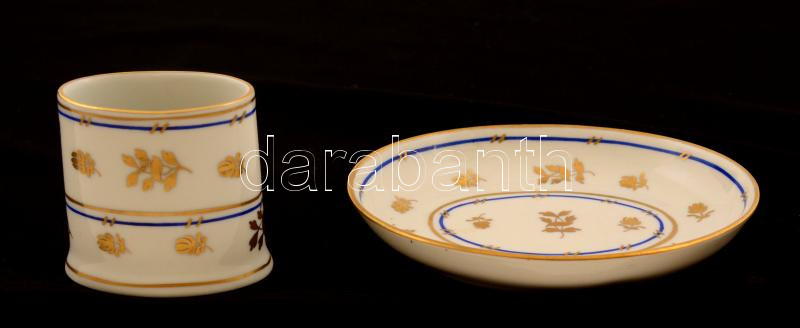 Beschreibung: Herendi porcelán aranymintás kis hamuzótálka fogpiszkálótartóval, jelzett, a fogpiszkálótartón lepattanással, 12x9 és 5,5x3 cm