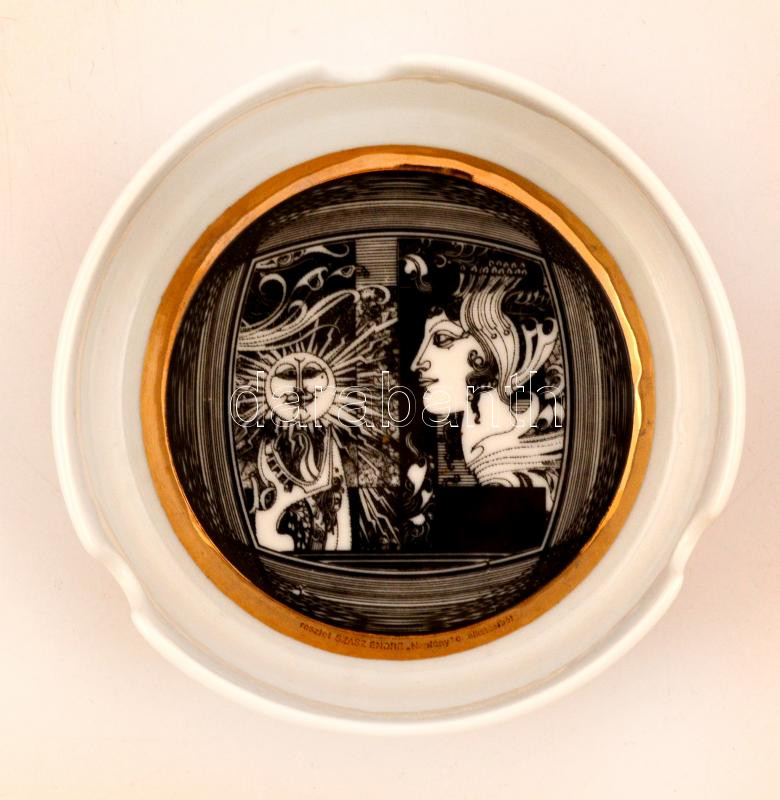 Hollóházi Szász Endre által tervezett mintával díszített porcelán hamu... https://www.darabanth.com/de/277-Fernauktion/277.0/Andere-Sammelgebiete/Porzellan~7/Hollohazi-Szasz-Endre-altal-tervezett-mintaval-diszitett-porcelan-hamutal-jelzett-hibatl~II1425293