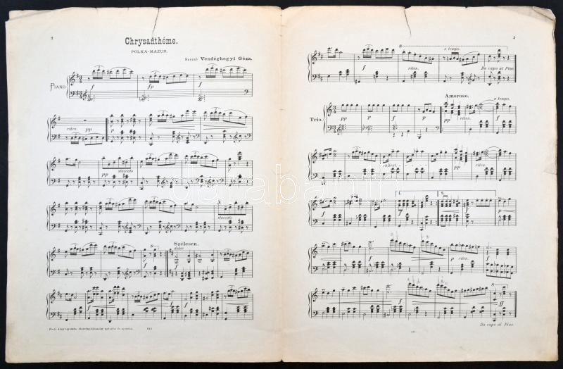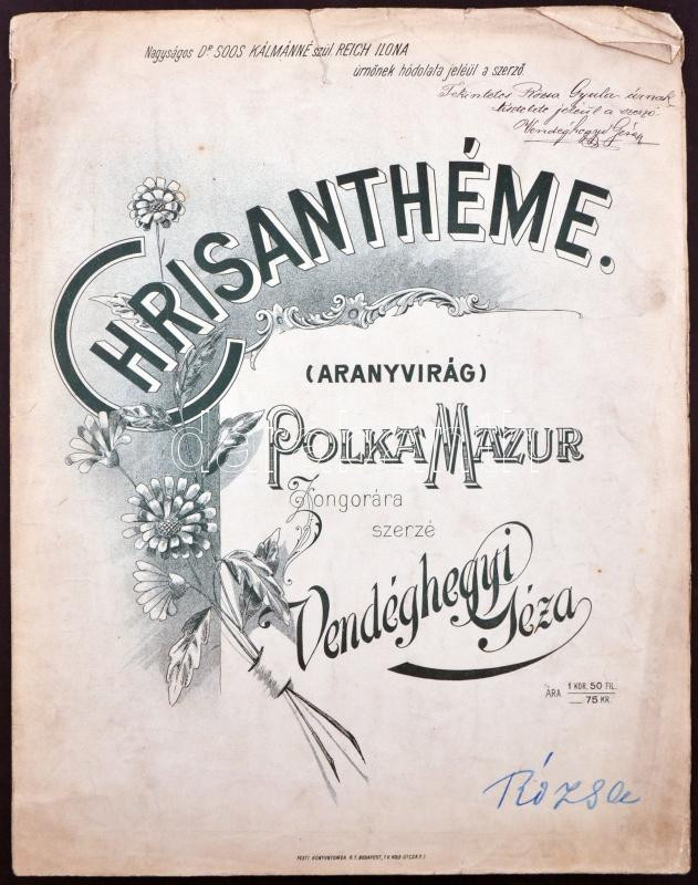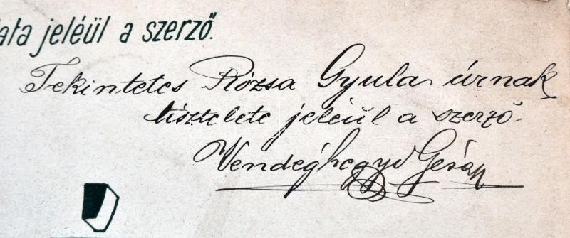 Beschreibung: cca 1896 Kotta a zeneszerző, Vendéghegyi Géza saját kézzel írt ajánlásával az Operaház pénztárnokának