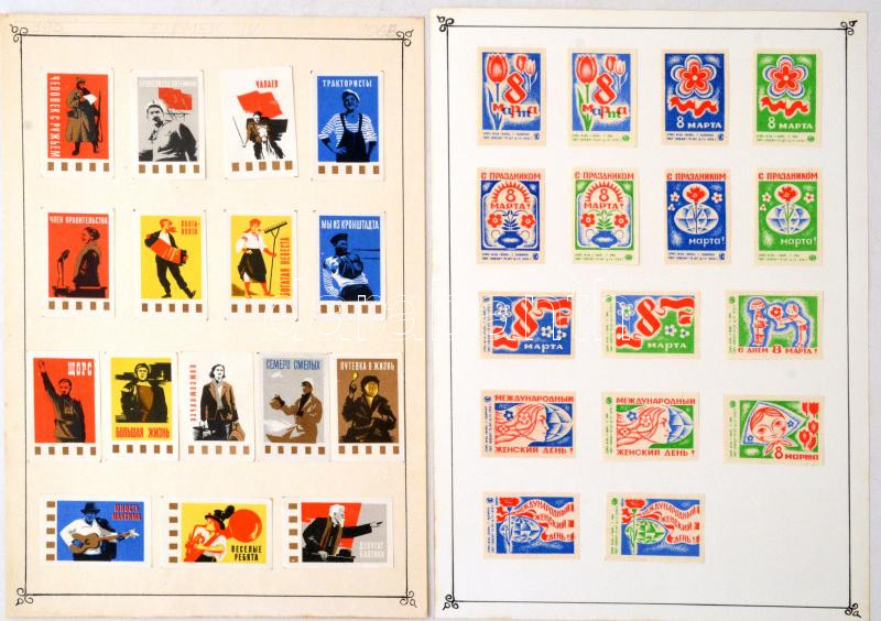 Szovjet gyufacímke gyűjtemény március 8, filmek, híres napok, tűzvédelem, csónakok, turizmus, stb. témában, 13db kartonon, 216 db,különböző méretben