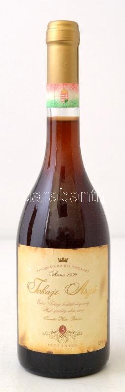 Beschreibung: 1996 Tokaji Aszú 3 puttonyos, bontatlan csomagolásban, fa tartóban, fogyaszthatósága nem bevizsgált, 0,5 l