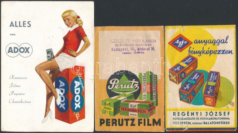 3 db fényképezőgépbe való film reklámja és tasakja(Adox, Agfa, Perutz) https://www.darabanth.com/de/277-Fernauktion/277.0/Andere-Sammelgebiete/Werbungen~21/3-db-fenykepezogepbe-valo-film-reklamja-es-tasakjaAdox-Agfa-Perutz~II1420508