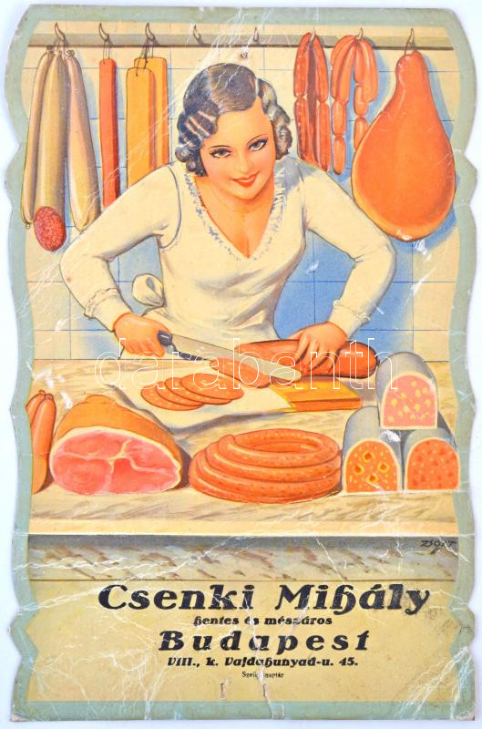 cca 1930-1940 Csenki Mihály hentes és mészáros (Bp. VIII., Vajdahunyad... https://www.darabanth.com/de/277-Fernauktion/277.0/Andere-Sammelgebiete/Werbungen~21/cca-1930-1940-Csenki-Mihaly-hentes-es-meszaros-Bp-VIII-Vajdahunyad-u-45-dombornyomott-re~II1421612
