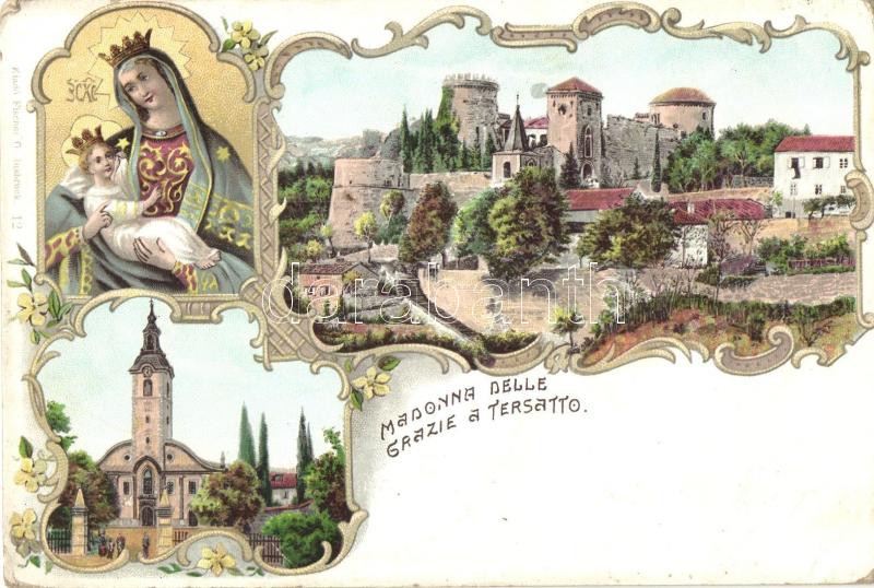 1898 Fiume, Trsat, Tersatto; Kegytemplom, vár, kiadja Fischer G. / chu... https://www.darabanth.com/de/277-Fernauktion/277.0/Ansichtskarten/Kroatien~300013/1898-Fiume-Trsat-Tersatto-Kegytemplom-var-kiadja-Fischer-G-church-castle-Art-Noiveau-flo~II1418905