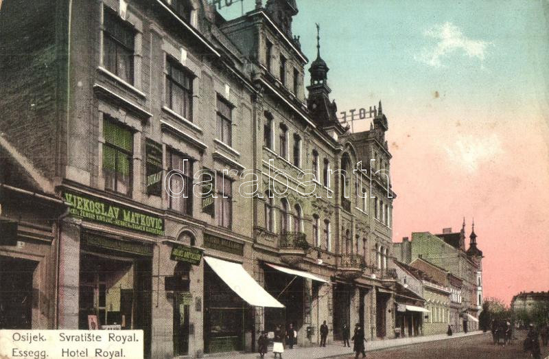 Eszék, Esseg, Osijek; Royal szálloda, Vjekoslav Matkovic üzlete / hote... https://www.darabanth.com/de/277-Fernauktion/277.0/Ansichtskarten/Kroatien~300013/Eszek-Esseg-Osijek-Royal-szalloda-Vjekoslav-Matkovic-uzlete-hotel-shop-azott-sarok-wet~II1419840