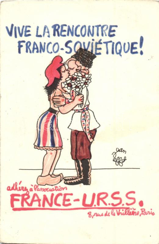 'Vive la rencontre Franco-Soviétique!' / French-Soviet friendship prop... https://www.darabanth.com/de/277-Fernauktion/277.0/Ansichtskarten/Propaganda-Politik~300088/Vive-la-rencontre-Franco-Sovietique-French-Soviet-friendship-propaganda-postcard-s-Jean-Effe~II1424882
