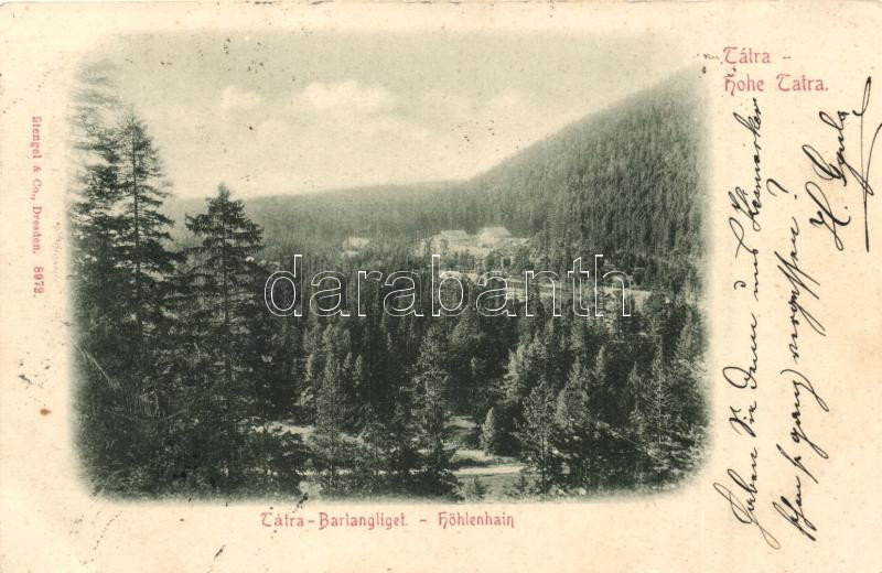 1899 Tátra, Barlangliget, Höhlenhain, Tatranská Kotlina; https://www.darabanth.com/de/277-Fernauktion/277.0/Ansichtskarten/Slowakei~300011/1899-Tatra-Barlangliget-Hohlenhain-Tatranska-Kotlina-~II1424062
