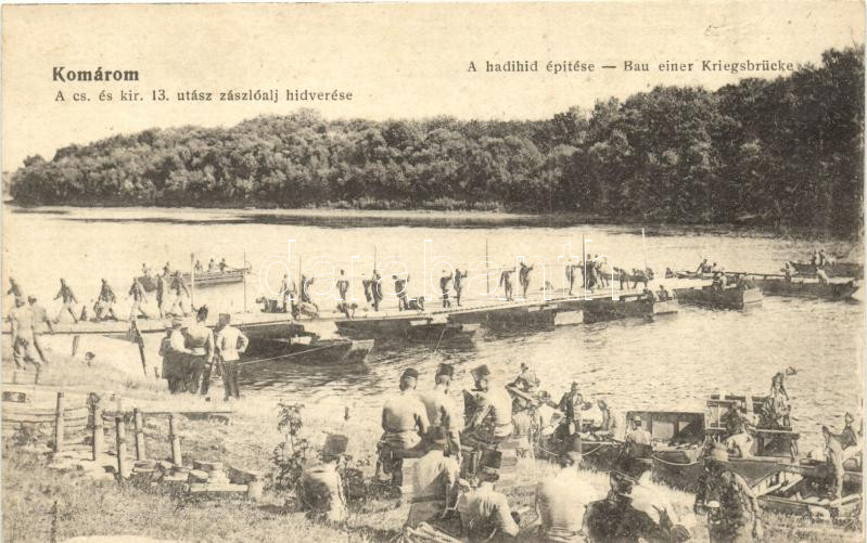 Komárom, Komárno; A cs. és kir. 13. utász zászlóalj hídverése / milita... https://www.darabanth.com/de/277-Fernauktion/277.0/Ansichtskarten/Slowakei~300011/Komarom-Komarno-A-cs-es-kir-13-utasz-zaszloalj-hidverese-military-bridge-construction~II1423120