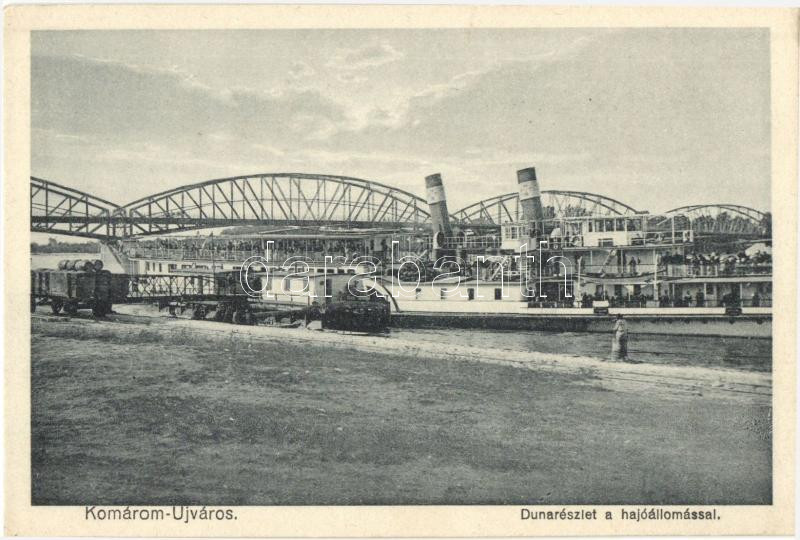 Komárom, Komárno; Hajóállomás, gőzhajó, híd / port, steamship, bridge https://www.darabanth.com/de/277-Fernauktion/277.0/Ansichtskarten/Slowakei~300011/Komarom-Komarno-Hajoallomas-gozhajo-hid-port-steamship-bridge~II1420538