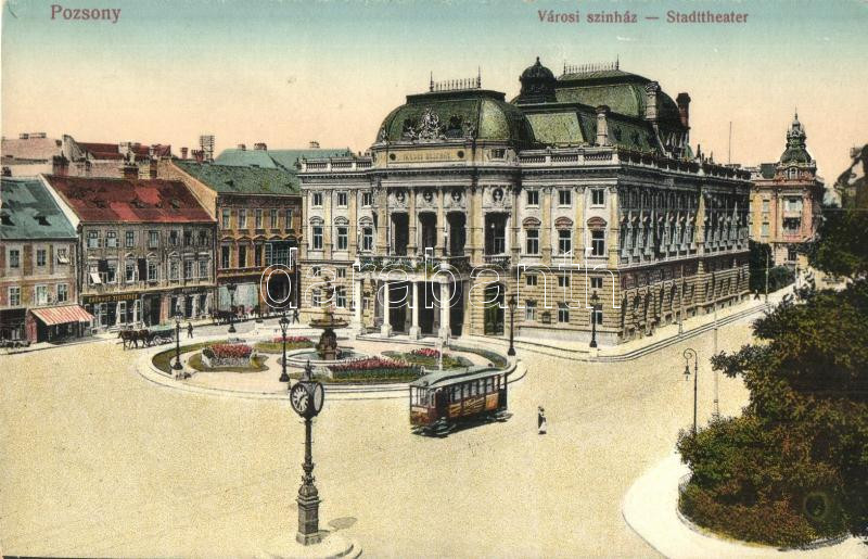 Pozsony, Bratislava; Városi színház, villamos / theatre, tram (Rb) https://www.darabanth.com/de/277-Fernauktion/277.0/Ansichtskarten/Slowakei~300011/Pozsony-Bratislava-Varosi-szinhaz-villamos-theatre-tram-Rb~II1418168