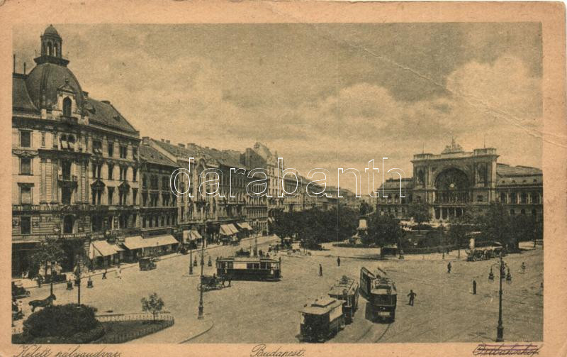 Budapest VII. Keleti pályaudvar, villamosok https://www.darabanth.com/de/277-Fernauktion/277.0/Ansichtskarten/Ungarn~300009/Budapest-VII-Keleti-palyaudvar-villamosok~II1424826