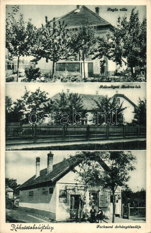 Beschreibung: Budapest XVII. Rákoscsabaújtelep, Regős villa, rákosligeti Bodros lak, Farkasné dohánytőzsdéje, kiadja Farkas Gézáné