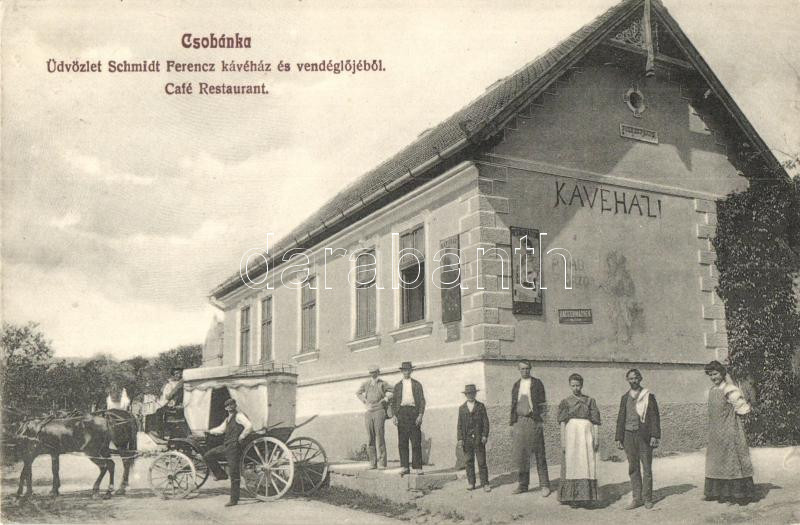 Csobánka, Schmidt Ferenc kávéháza és vendéglője https://www.darabanth.com/de/277-Fernauktion/277.0/Ansichtskarten/Ungarn~300009/Csobanka-Schmidt-Ferenc-kavehaza-es-vendegloje~II1419688