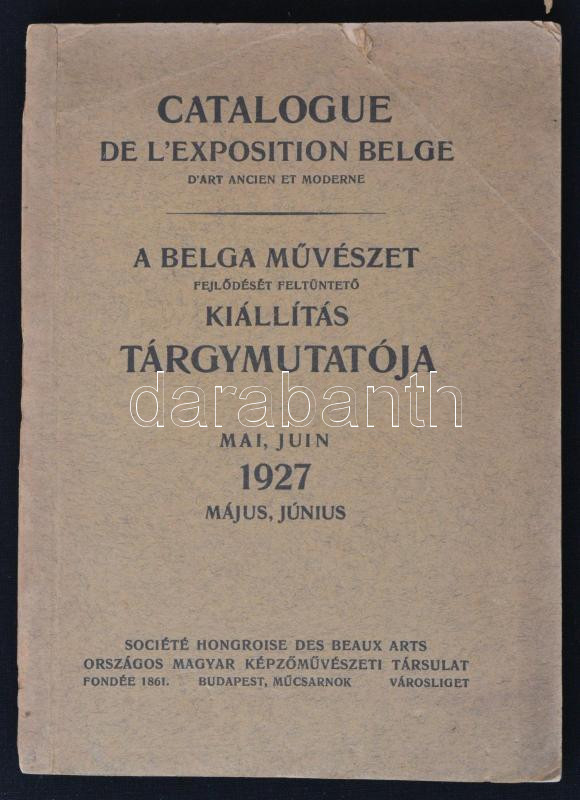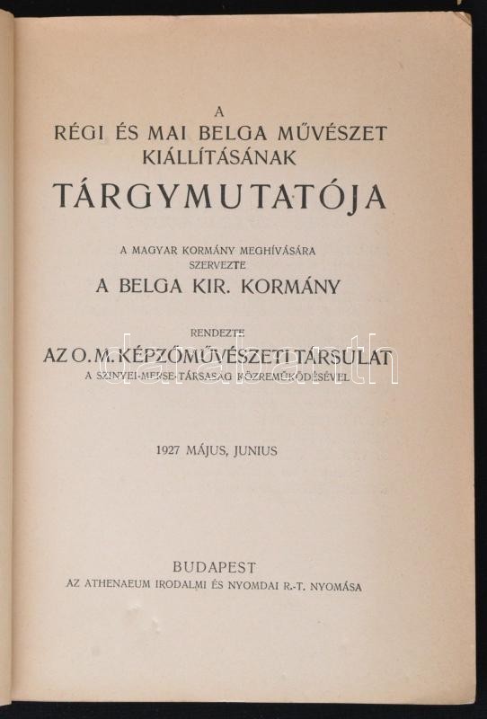 A régi és mai belga művészet kiállításainak tárgymutatója. A magyar kormány meghívására szervezte a belga kir. kormány. Rendezte az O.M. Képzőművészeti Társulat, a Szinyei-Merse-Társaság közreműködésével. Budapest, 1927, Athenaeum Irodalmi és Nyomdai Rt. Kiadói papírkötésben, magyar és francia nyelven, gazdag egészoldalas fekete-fehér képanyaggal, némileg szakadozott borítóval.