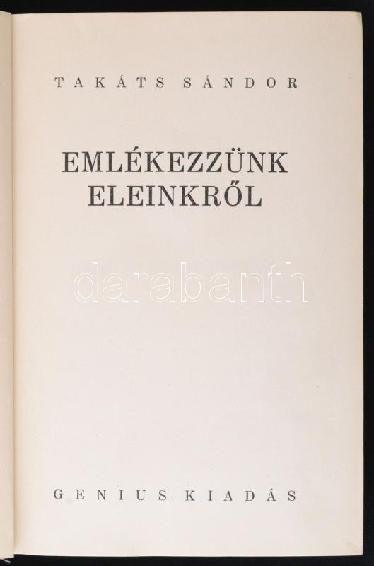 Takáts Sándor: Emlékezzünk eleinkről. Bp., é. n., Genius. Vászonkötésb... https://www.darabanth.com/de/277-Fernauktion/277.0/Bucher/Bucher-Geschichte~33/Takats-Sandor-Emlekezzunk-eleinkrol-Bp-e-n-Genius-Vaszonkotesben-jo-allapotban~II1423572