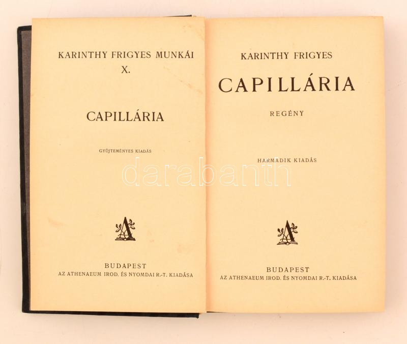 A Karinthy Frigyes munkái 4-5. és 9-10. kötete: Gyilkosok, Krisztus va... https://www.darabanth.com/de/277-Fernauktion/277.0/Bucher/Bucher-Sonstige-Raritaten~45/A-Karinthy-Frigyes-munkai-4-5-es-9-10-kotete-Gyilkosok-Krisztus-vagy-Barabbas-Esik-a-ho-C~II1422184