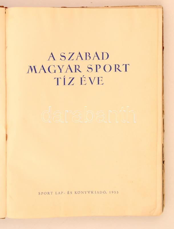A szabad magyar sport tíz éve. Bp., 1955, Sport Lap- és Könyvkiadó. Ki... https://www.darabanth.com/de/277-Fernauktion/277.0/Bucher/Bucher-Sonstige-Raritaten~45/A-szabad-magyar-sport-tiz-eve-Bp-1955-Sport-Lap-es-Konyvkiado-Kisse-megviselt-felvaszo~II1420265
