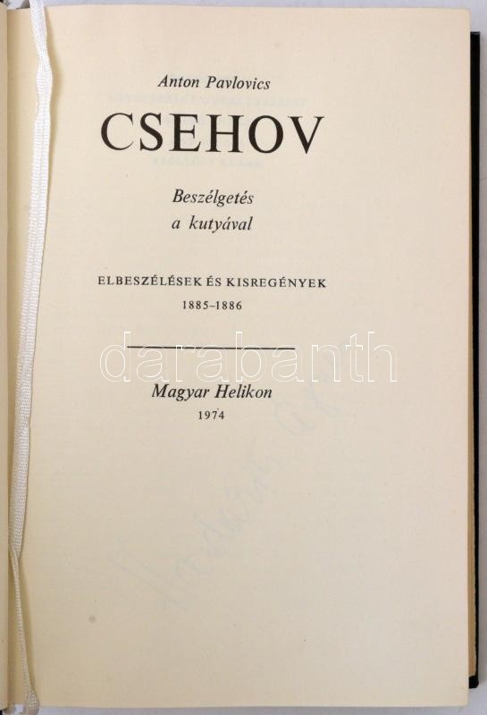 Anton Pavlovics Csehov: Beszélgetés a kutyával. Elbeszélések és kisregények. 1885-1886. Budapest, 1974, Magyar Helikon, 609 p. Kiadói nyl-kötés. Számozott (2000/1643) példány!