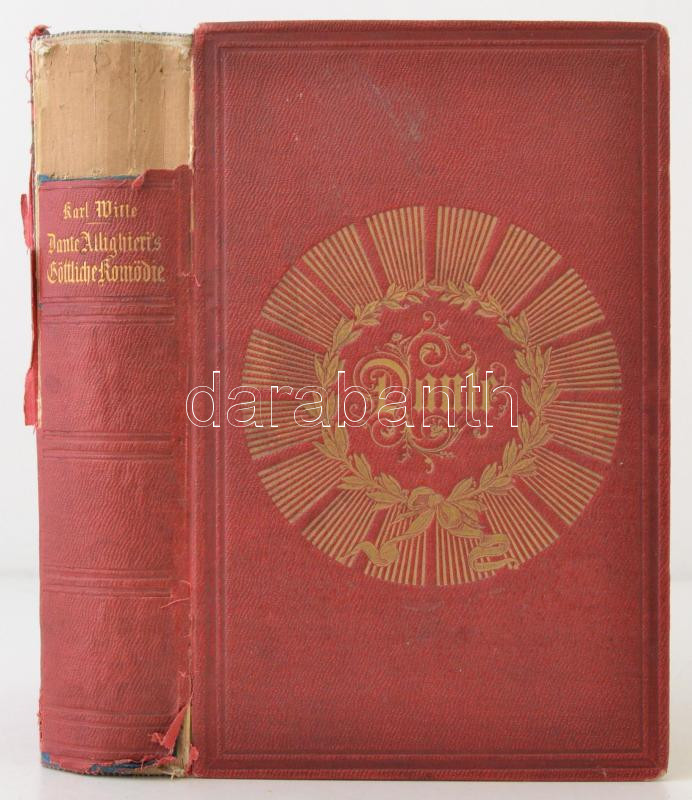 Beschreibung: Dante Alighieri: Göttliche Komödie. Berlin, 1865, Rudolph Ludwig von Decker. Aranyozott lapszélekkel, díszes, sérült vászonkötésben.