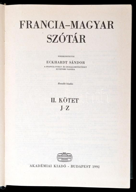 Eckhardt Sándor: Francia-magyar Nagyszótár I-II. Budapest, 1992, Akadé... https://www.darabanth.com/de/277-Fernauktion/277.0/Bucher/Bucher-Sonstige-Raritaten~45/Eckhardt-Sandor-Francia-magyar-Nagyszotar-I-II-Budapest-1992-Akademiai-Kiado-Kiadoi-eges~II1425231