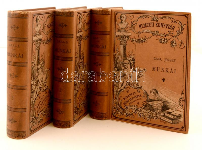 Gaal József összes művei 1-3. Nemzeti Könyvtár 23.,27.,28. Budapest, 1881-1882, Aigner Lajos. Kiadói illusztrált egészvászon (Gottermayer N.-féle) kötés, márványozott lapélekkel. Jó állapotban.