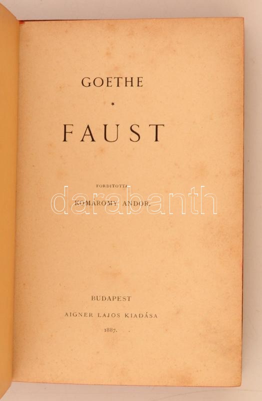 Goethe: Faust. Fordította Komáromy Andor. Budapest, 1887, Aigner Lajos... https://www.darabanth.com/de/277-Fernauktion/277.0/Bucher/Bucher-Sonstige-Raritaten~45/Goethe-Faust-Forditotta-Komaromy-Andor-Budapest-1887-Aigner-Lajos-Kiadoi-aranyozott-illusz~II1421942