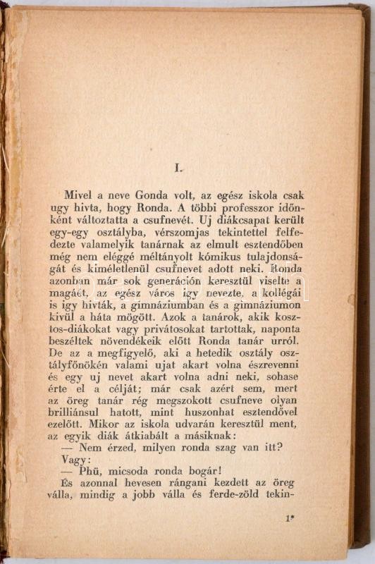 Heinrich Mann: Ronda tanár úr. Fordította Kosztolányi Dezső. Békéscsaba, 1914, Tevan-kiadás, 240 p. Átkötött egészvászon kötés. A kötése picit sérült. Egy lap kijár. (237/238 p.)