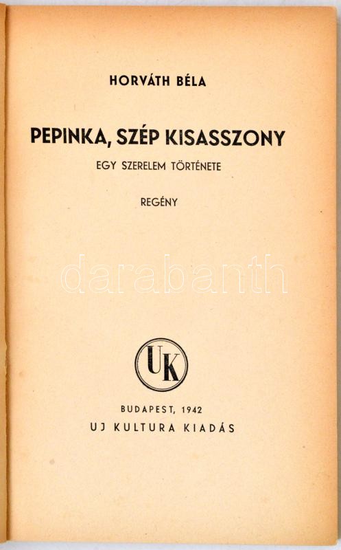 Horváth Béla: Pepinka szép kisasszony. Egy szerelem története. Fehér H... https://www.darabanth.com/de/277-Fernauktion/277.0/Bucher/Bucher-Sonstige-Raritaten~45/Horvath-Bela-Pepinka-szep-kisasszony-Egy-szerelem-tortenete-Feher-Hollo-Regenyek-Budapes~II1402487