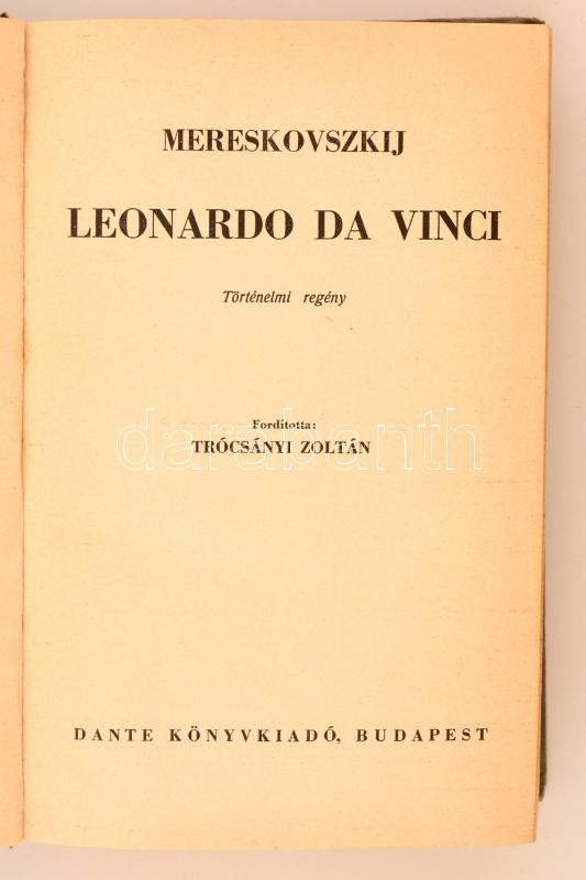 Mereskovszkij: Leonardo Da Vinci. Fordította Trócsányi Zoltán. Budapes... https://www.darabanth.com/de/277-Fernauktion/277.0/Bucher/Bucher-Sonstige-Raritaten~45/Mereskovszkij-Leonardo-Da-Vinci-Forditotta-Trocsanyi-Zoltan-Budapest-1941-Dante-Kiadoi-ar~II1422045