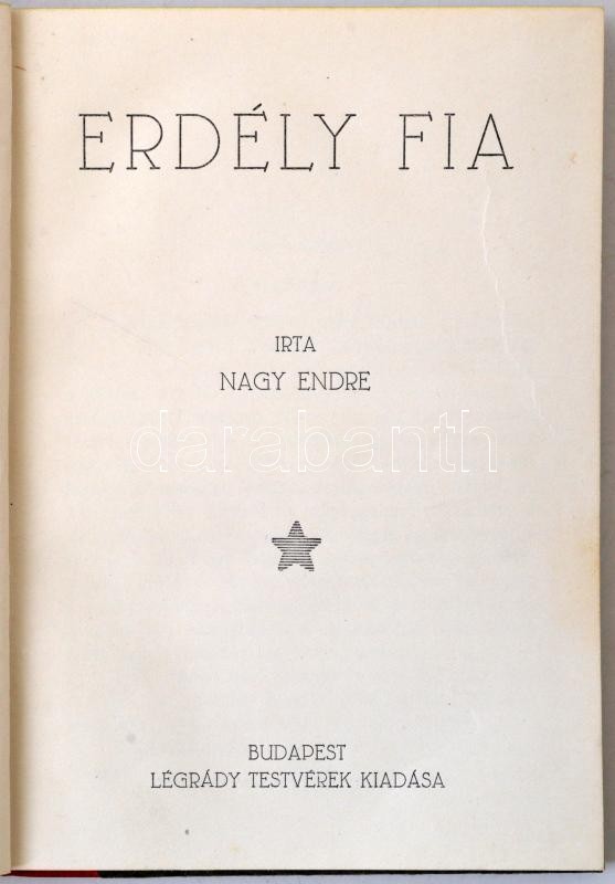 Nagy Endre: Erdély fia. Budapest, é.n., Légrády Testvérek. Az Érdekes ... https://www.darabanth.com/de/277-Fernauktion/277.0/Bucher/Bucher-Sonstige-Raritaten~45/Nagy-Endre-Erdely-fia-Budapest-en-Legrady-Testverek-Az-Erdekes-Ujsag-Konyvei-Kiado~II1403047