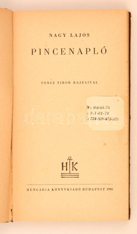 Nagy Lajos: Pincenapló. Bp., 1945, Hungária. Sérült gerincű kartonált ... https://www.darabanth.com/de/277-Fernauktion/277.0/Bucher/Bucher-Sonstige-Raritaten~45/Nagy-Lajos-Pincenaplo-Bp-1945-Hungaria-Serult-gerincu-kartonalt-papirkotesben-egyeb~II1421498