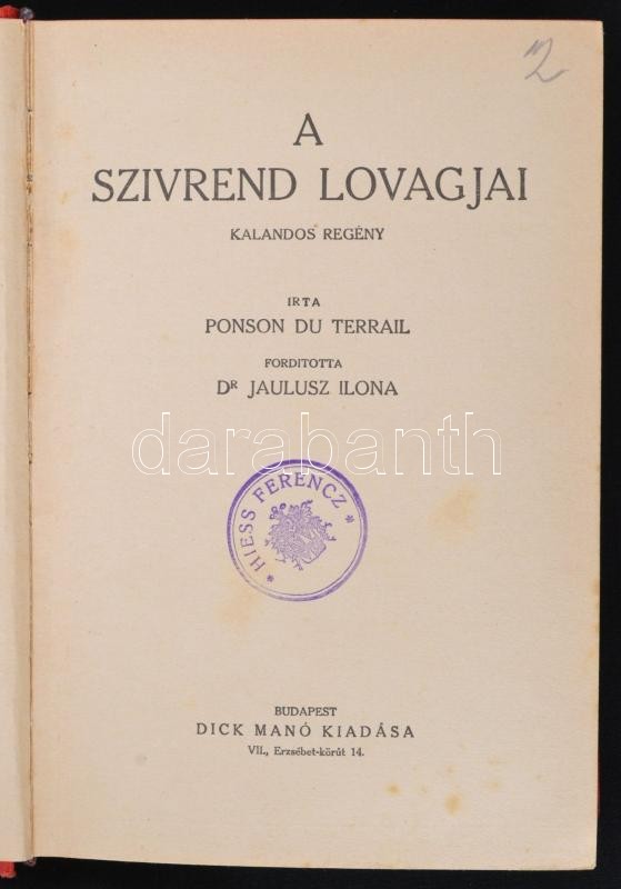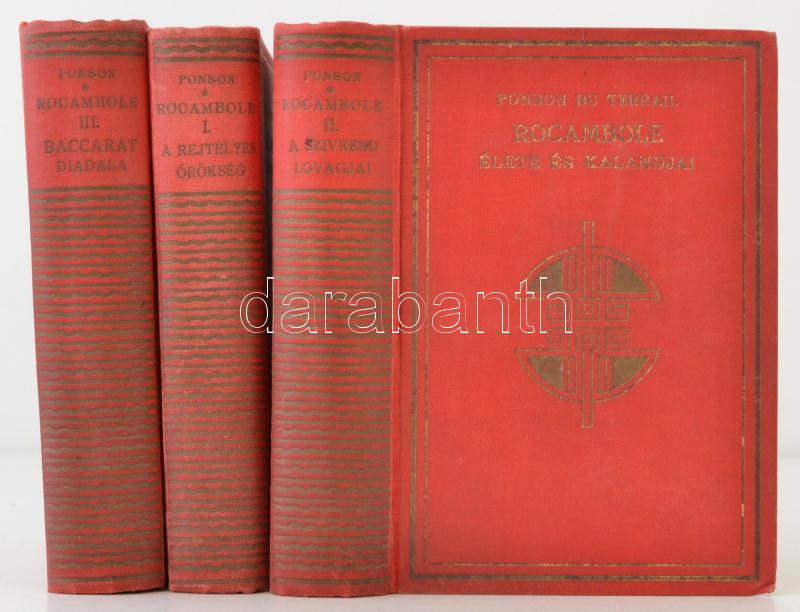 Ponson Du Terrail: Rocambole élete és kalandjai I-III. Fordította Zigány Árpád. Budapest, é.n, Dick Manó. Kiadói aranyozott egészvászon kötés, picit kopott, picit foltos borítóval, picit foltos védő-, és előzéklapokkal.