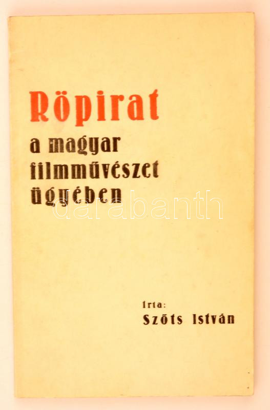 Szőts István: Röpirat a magyar filmművészet ügyében. Budapest, 1989, M... https://www.darabanth.com/de/277-Fernauktion/277.0/Bucher/Bucher-Sonstige-Raritaten~45/Szots-Istvan-Ropirat-a-magyar-filmmuveszet-ugyeben-Budapest-1989-Magyar-Filmintezet-Kia~II1420122