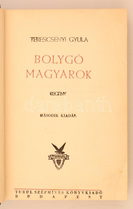 Terecsényi Gyula: Bolygó Magyarok. Budapest, é.n., Turul Szépmíves Kön... https://www.darabanth.com/de/277-Fernauktion/277.0/Bucher/Bucher-Sonstige-Raritaten~45/Terecsenyi-Gyula-Bolygo-Magyarok-Budapest-en-Turul-Szepmives-Konyvkiado-302-p-Turul-S~II1421835