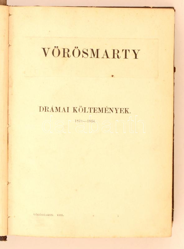 Vörösmarty Mihály: Drámai Költemények. 1821-1844. Vörösmarty Mihály mu... https://www.darabanth.com/de/277-Fernauktion/277.0/Bucher/Bucher-Sonstige-Raritaten~45/Vorosmarty-Mihaly-Dramai-Koltemenyek-1821-1844-Vorosmarty-Mihaly-munkai-VIII-Budapest~II1421569