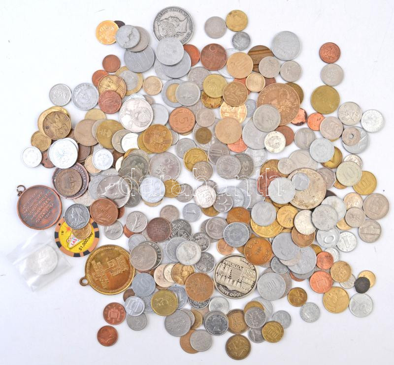 Beschreibung: Vegyes fémpénz, plakett és zseton tétel, néhány hamis darabbal, ~1,1kg súlyban, köze Lengyelország 1933. 5Zl Ag T:vegyes