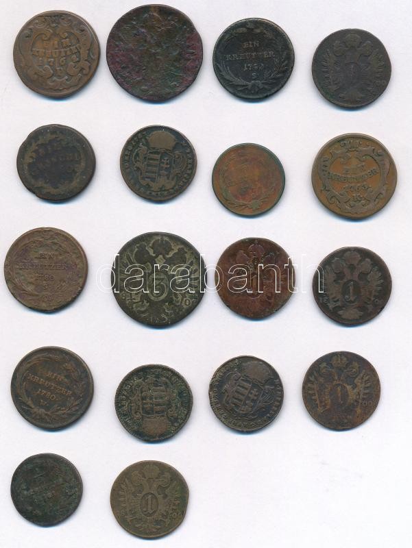 Vegyes fémpénz tétel ~110g súlyban, réz érmék, közte 1780S 1kr Cu, 178... https://www.darabanth.com/de/277-Fernauktion/277.0/Numismatik/Gemischt-Lose-Banknoten-und-Munzen~400019/Vegyes-fempenz-tetel-7E110g-sulyban-rez-ermek-kozte-1780S-1kr-Cu-1780W-1kr-Cu-Tvegyes~II1425526