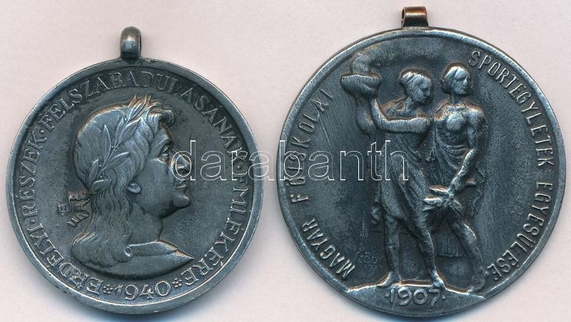 Beschreibung: 1940. "Erdélyi részek felszabadulásának emlékére" cink emlékérem mellszalag nélkül. Szign.:BERÁN + Sződy Szilárd (1878-1939) 1935-1936. "Magyar Főiskolai Sportegyletek Egyesülése - 1907 / Bajnoki Érem" 3db fém díjérem, mind "LUDVIG" gyártói jelzéssel (40,5mm) T:2,2-