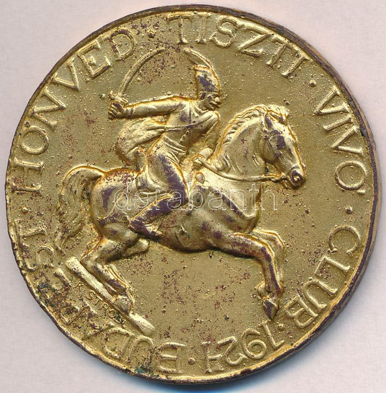 Beschreibung: Kisfaludi Stróbl Zsigmond (1884-1975) 1924. "Honvéd Tiszti Vívó Club 1924 Budapest" aranyozott fém emlékérem (50mm) T:2,2- patina