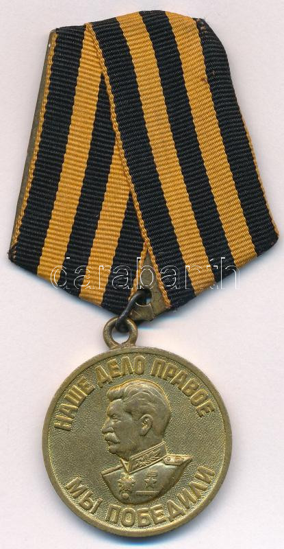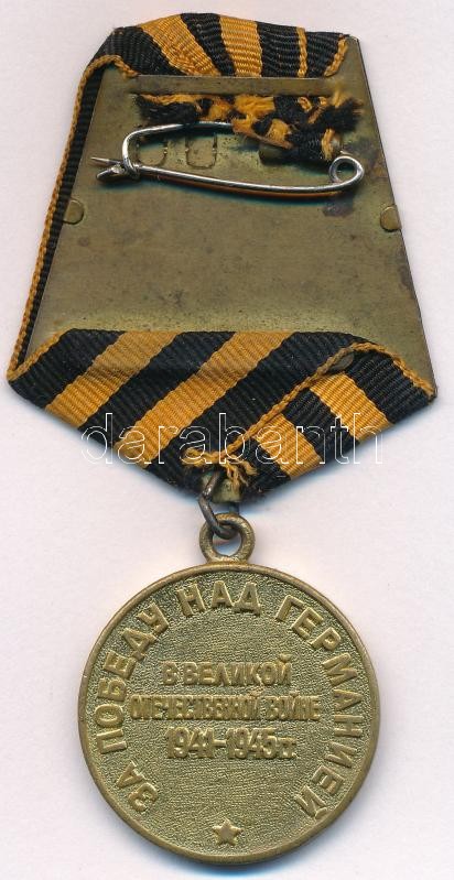Szovjetunió 1945. "A Németország felett aratott győzelemért az 1941-1945-ös Nagy Honvédő Háborúban" sárgaréz kitüntetés mellszalaggal T:1-,2