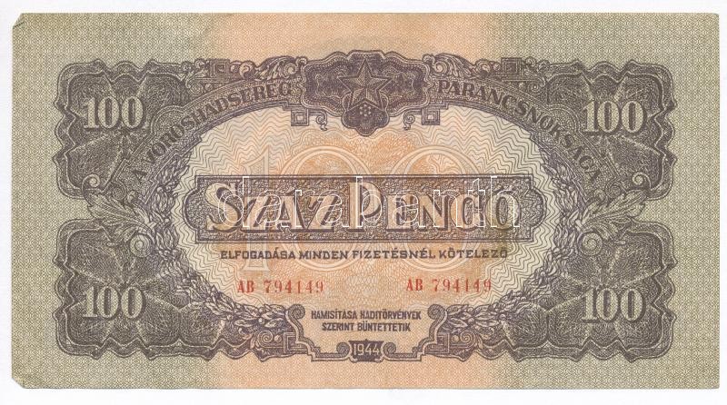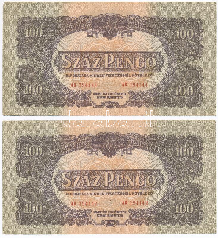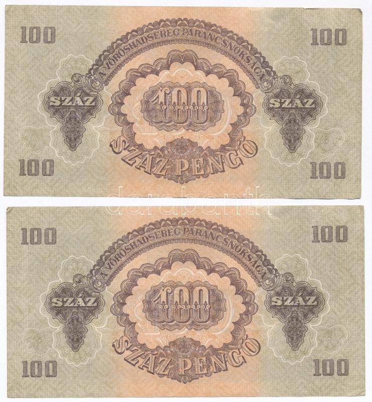 Beschreibung: 1944. 100P "A Vörös Hadsereg Parancsnoksága" (3x) közeli sorszámok T:III szép papír