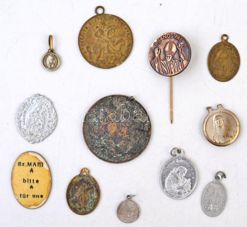 12db-os vegyes egyházi témájú emlékérem és jelvény, közte II. János Pál, Szent György T:2,2-,3